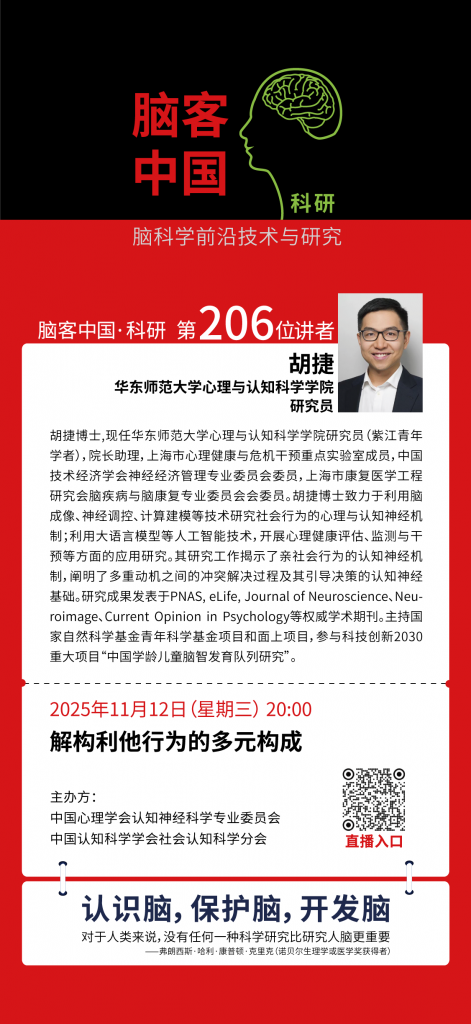 【直播预告】11月12日20点:胡捷 | 解构利他行为的多元构成